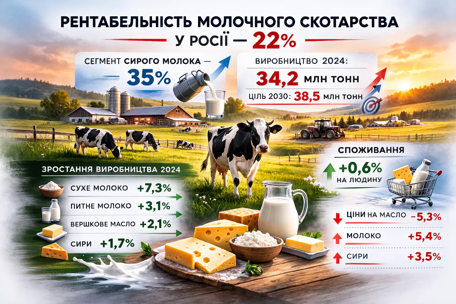 Як повідомляє Interfax.ru, Міністерство сільського господарства рф очікує, що рентабельність молочного скотарства за підсумками 2025 року становитиме 22% без урахування