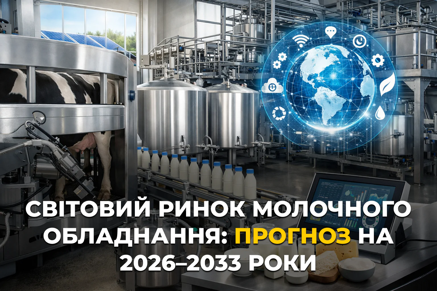 Глобальний ринок обладнання для молочної галузі може зрости з $12,13 млрд у 2026 році до $18,11 млрд у 2033 році,