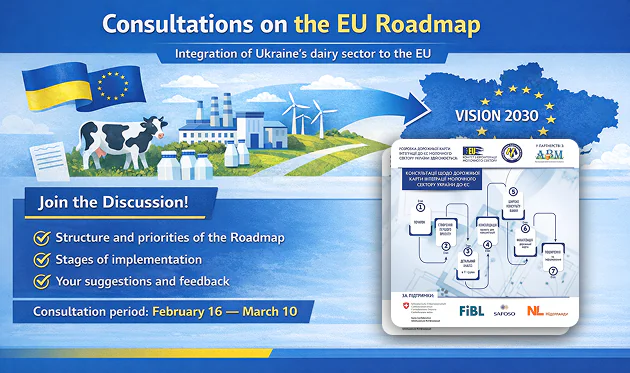 The Committee on European Integration of the dairy sector under the Union of Dairy Enterprises of Ukraine (UDEU) has presented a consultation draft of the Roadmap for integrating Ukraine’s dairy industry into the European Union and launched a public discussion of the document.